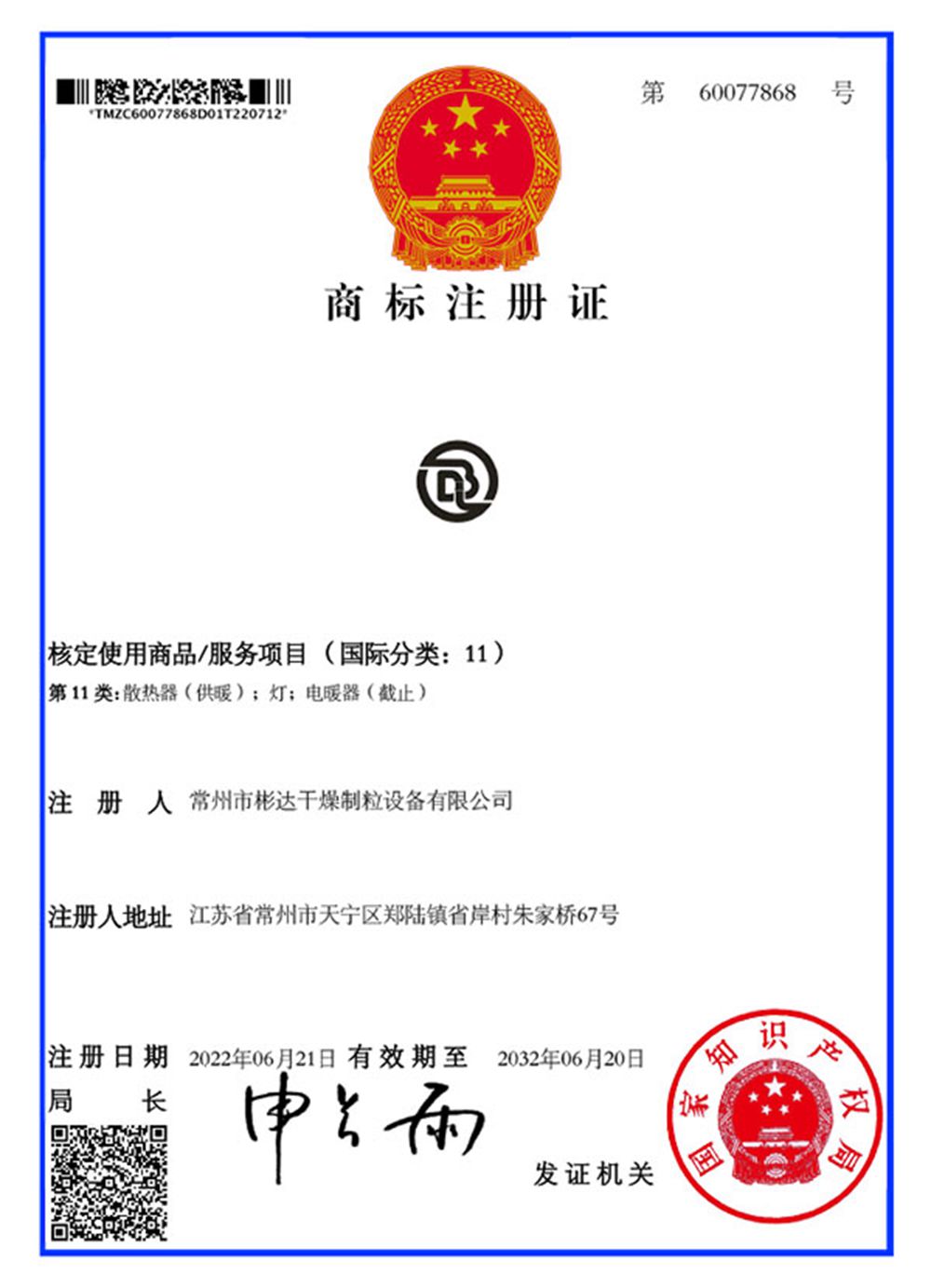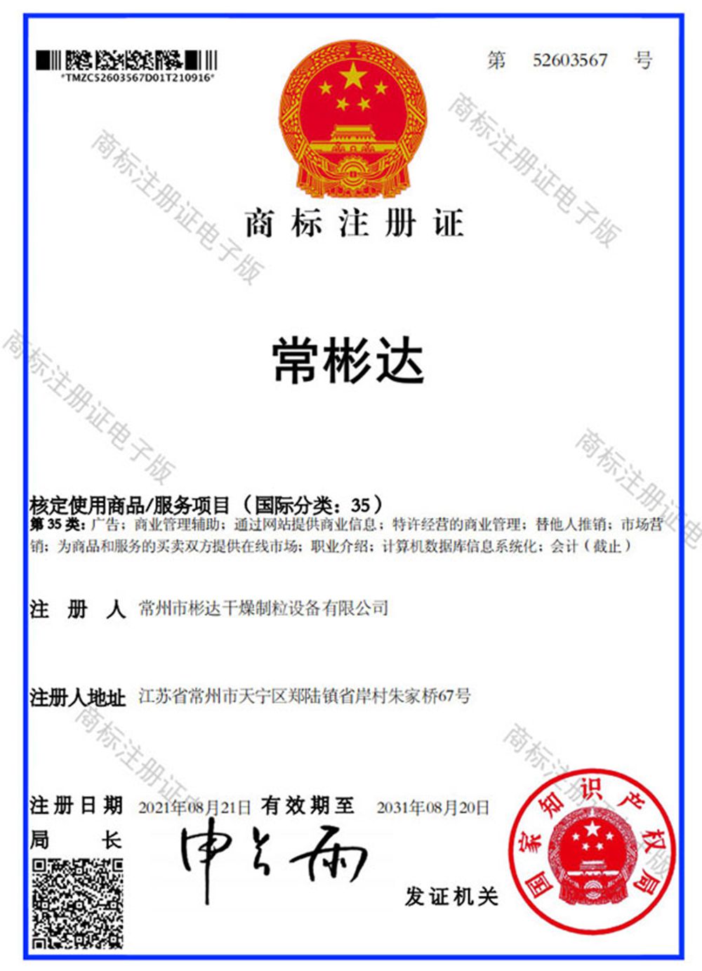 Patent certificate
