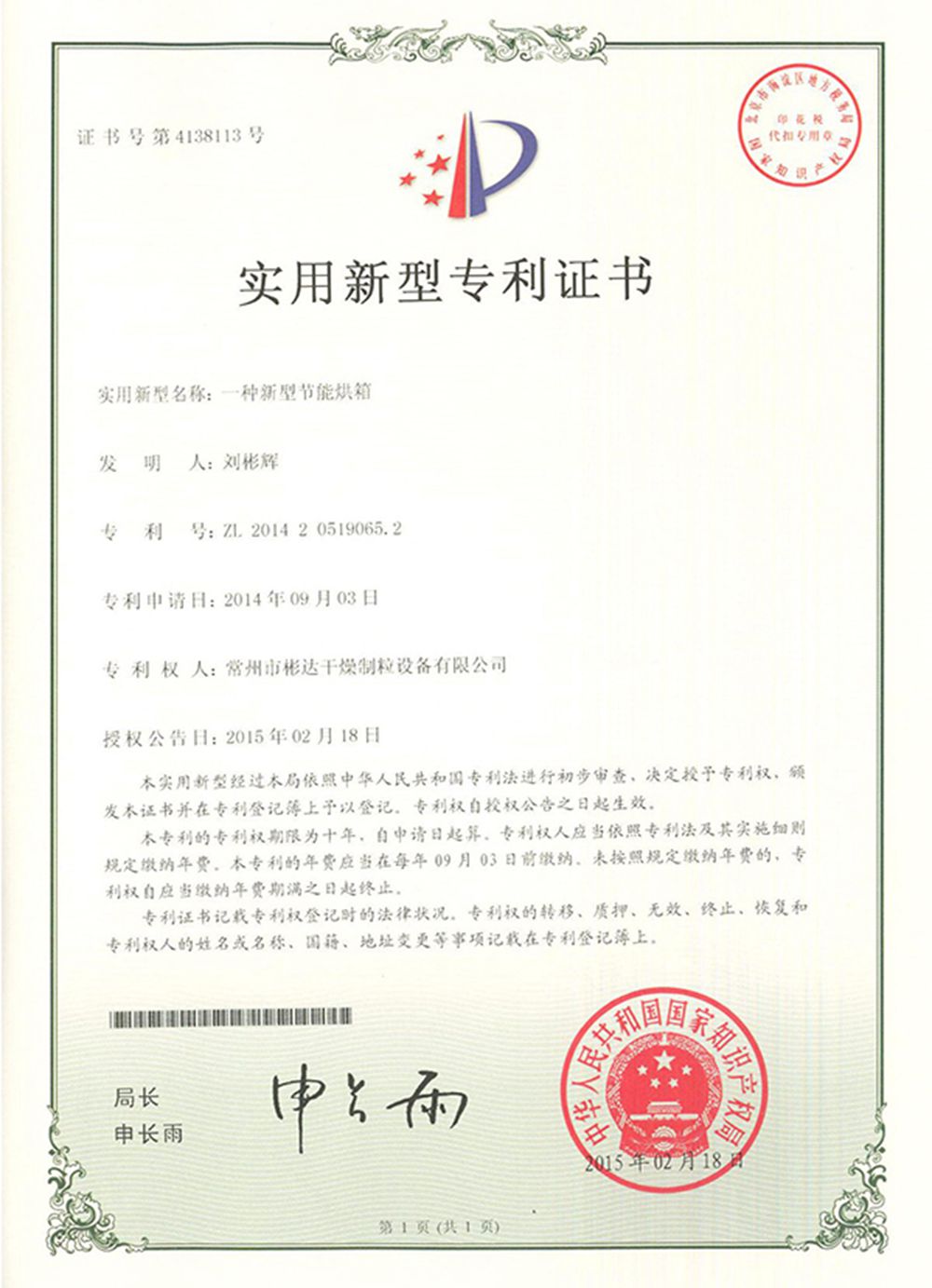 Patent certificate