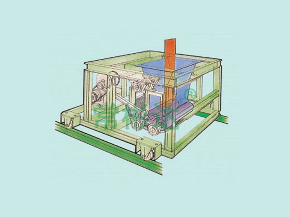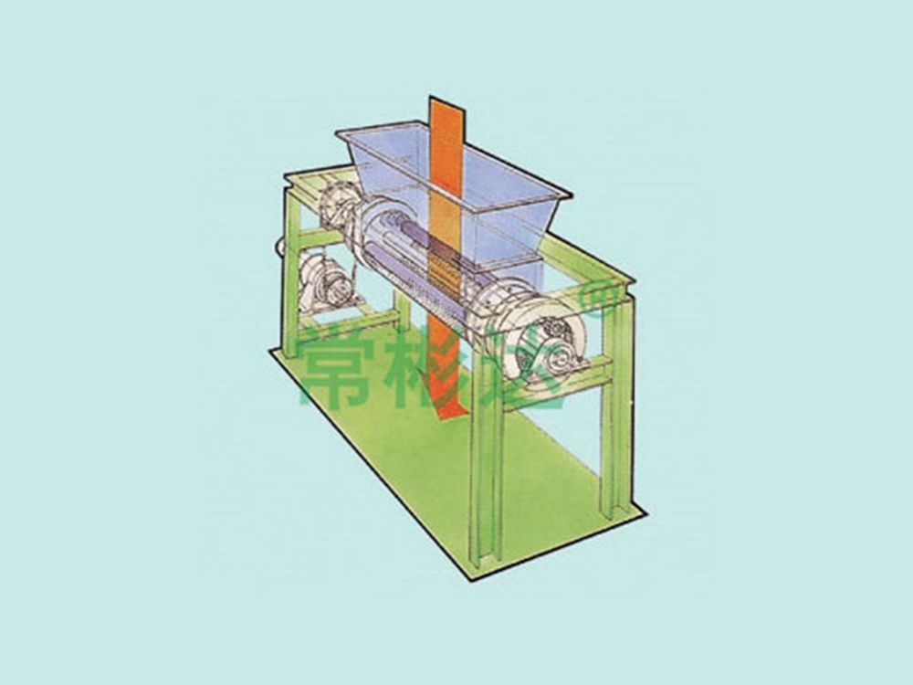 Groove forming machine: composed of a feeding hopper and two rollers engraved with grooves. The purpose of granulation is to increase the surface area of the material. The material is sucked in by the inner rotating roller and cut into granules by the reversed outer scraper. Horizontal extrusion molding machine: composed of a feeding hopper, two rollers, and a U-shaped vibrating mesh. With the aim of increasing the surface area of the material, the granulation material comes into contact with a vibrating mesh and is extruded out of the mesh by the forced pressure of a rotating roller, forming cylindrical particles. ◎ Roller granulator: