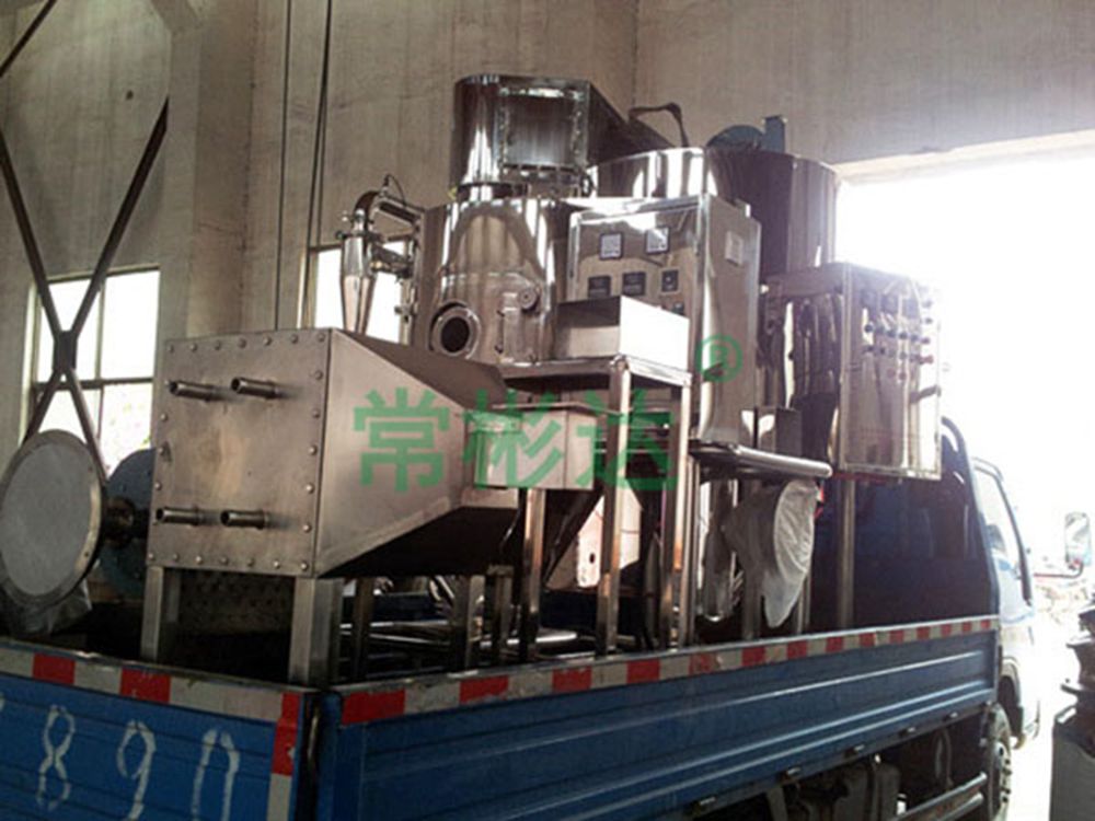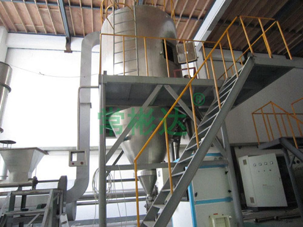 The machine adopts a fully enclosed form, with all components made of stainless steel and equipped with a three-stage purification device. The filtered air meets the requirement of 100000 level. The cylinder and top are equipped with cold wall devices to keep the wall temperature below 80 ℃, and the drying tower is equipped with an air brush sweeping device. After being dried by this machine, the traditional Chinese medicine extract powder will not undergo coking or deterioration, greatly increasing the powder collection rate (over 95%), and will not produce mixing or sticking phenomena.
